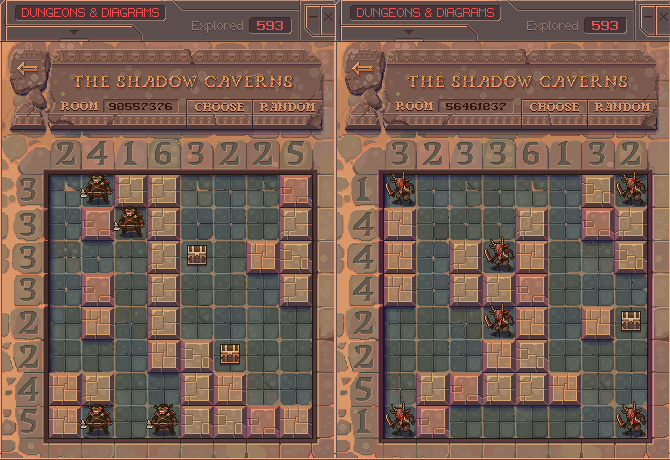 I have thought a lot about how one might generate these puzzles. I did breifly take a stab at it with some decent results, but the puzzles a) didn’t support treasure rooms, and b) were of generally extreme difficulty, often requiring backtracking (which is a hallmark of poor puzzle design). If I decide to come back to this project, It would certainly be to tackle this problem and try to generate arbitrary-sized puzzles of prescribed difficulty.